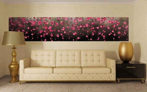 - Декоративное оформление изделий, отличается достаточно большим разнообразием, но самыми востребованными в дизайне современной кухни являются такие, в композицию которых включены представители флоры (цветы, деревья, фрукты, овощи) и фауны (например, тигры), природные ландшафты (реки, моря, горы, водопады).